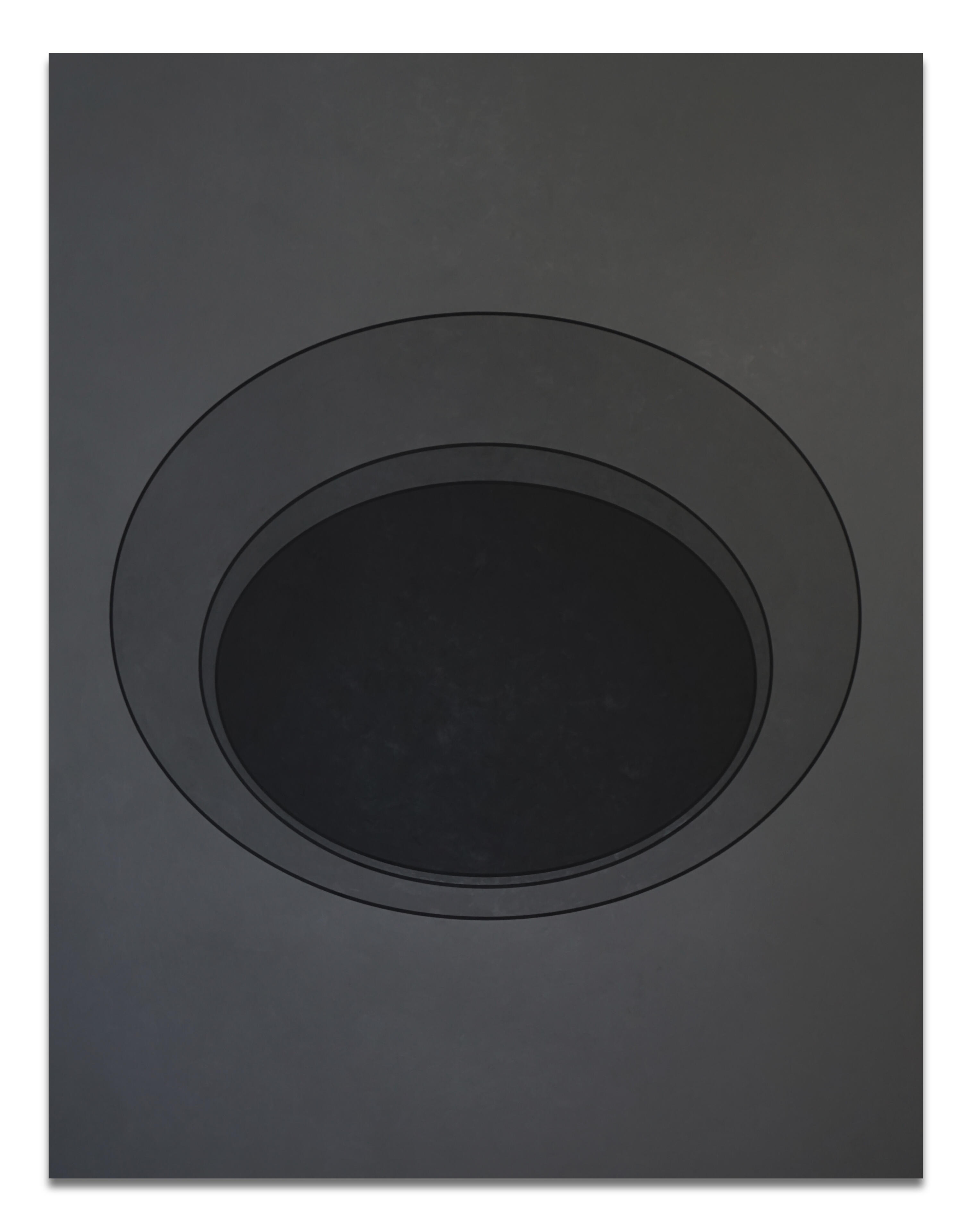 Automotive paint is delicately sprayed in many layers for a kind of pointillist effect. From a distance, the paintings seem like photographs. Reality and dream oscillate \ blur.